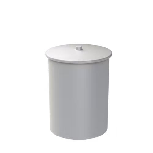 Cylindrisk öppen behållare med lock 280 lit. Material: Livsmedelsgodkänd och kemikalieresistent naturell Polyeten. Vikt 15 kg.