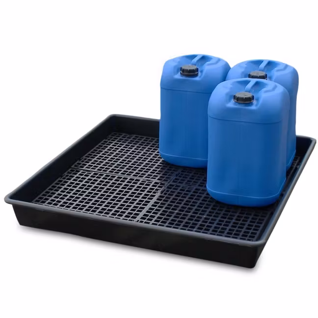 Förvaringskar i lågprofil med bottengaller som lätt kan plockas bort. Idealiskt vid dropp under ex. fordon. Perfekt för lagring och hantering av mindre behållare. Enkelt att rengöra. Stapelbar för smidig lagring och transport. Uppsamlingsvolym: 100L.