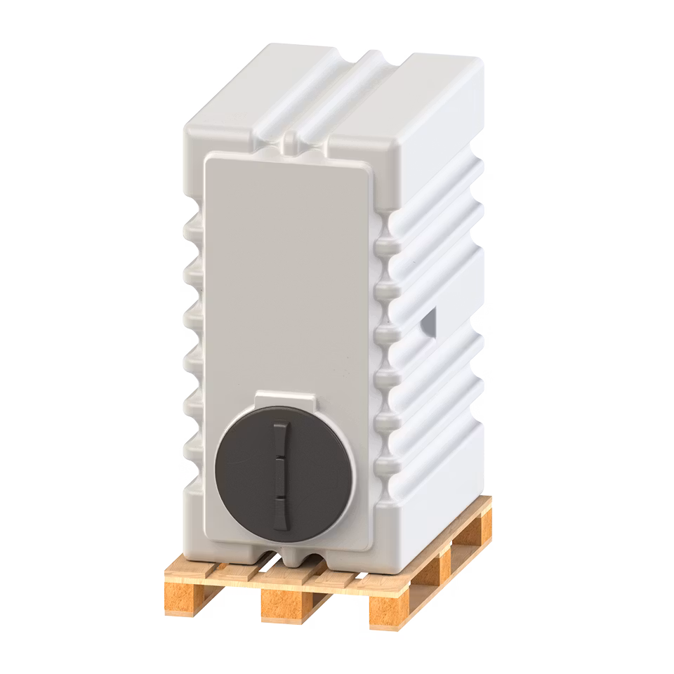 C21000. Rektangulär tank 1000 lit. Behållaren har ett lock med dubbel packning vilket gör locket helt tätt med en invändig öppning på 380mm, som ger möjlighet för eftermontering av sil. Ribbor i tanken ger inte bara stabilitet utan förhindrar även att spännband glider om man använder detta för förankring mot underlaget. Behållaren kan utrustas med svetsade anslutningar efter önskemål där det finns gott om plana ytor på alla sidor. Behållarens topp är belastningsbar för t.ex. montering av doseringspump.