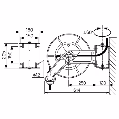 Slangupprullare hetvatten 250bar 10mm 15m.