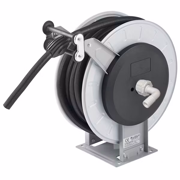Slangen rullas upp automatiskt och kan av användaren stoppas i vilken längd som helst.