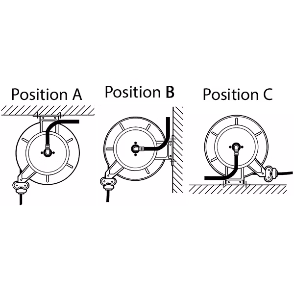 Slangstyrarmarna är justerbara i tre olika lägen enligt till slangupprullningsinstallationen (pos. A-B-C).